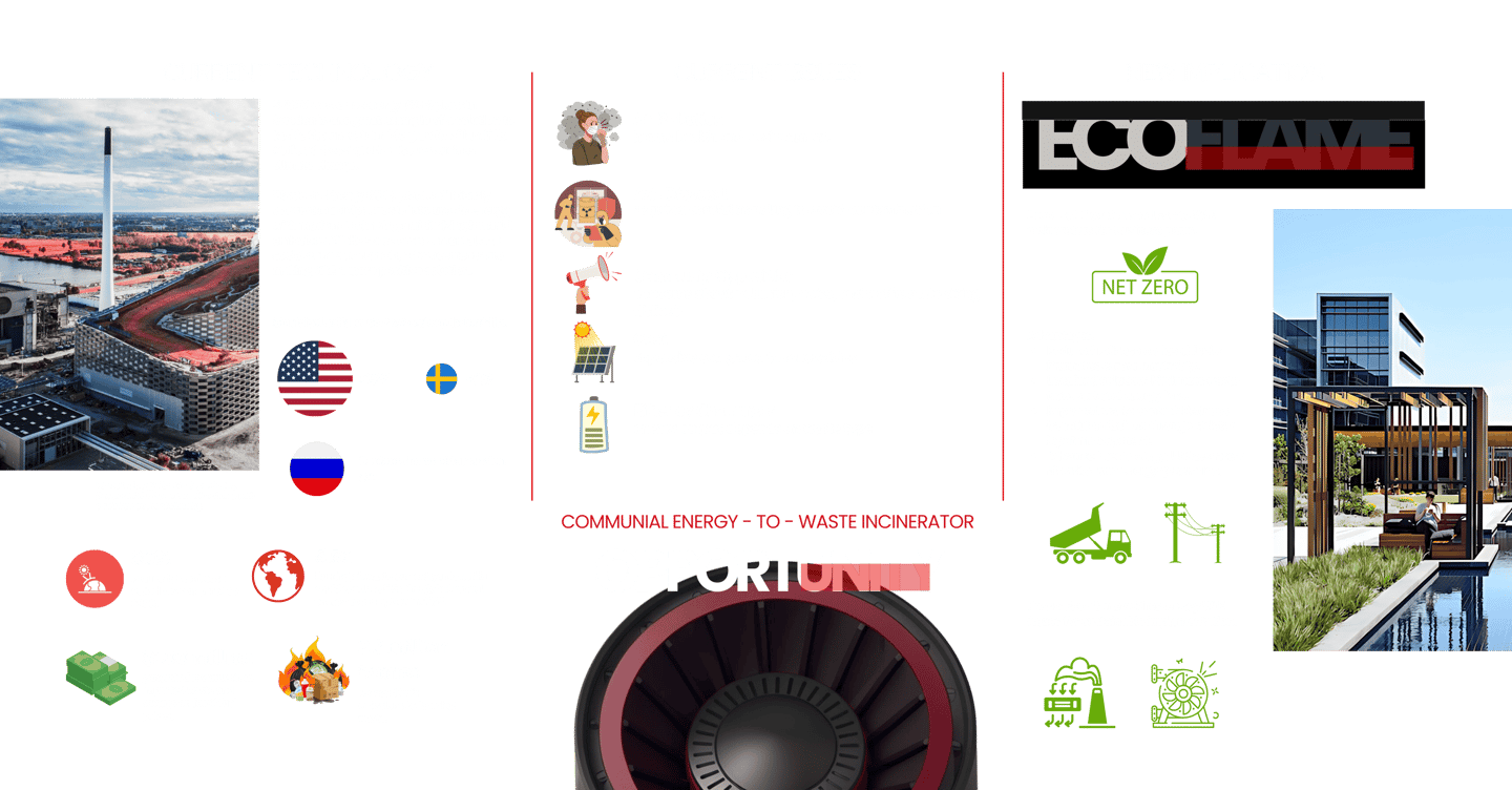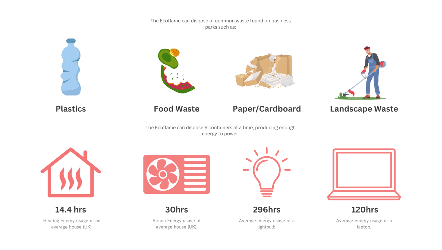 Problem// Business parks face the dual challenge of waste management and energy consumption. Traditional waste disposal methods are costly, environmentally harmful, and contribute to reliance on fossil fuels. Moreover, rising energy prices put a strain on operational costs.