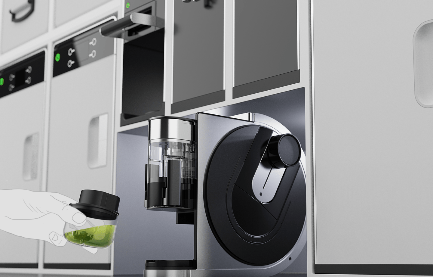 Solution// Accommodating the growing popularity, Sora elevates the in-flight experience with fresh, perfectly whisked matcha. This innovative unit automates and simplifies preparation using traditional techniques, ensuring a consistently delicious cup every time